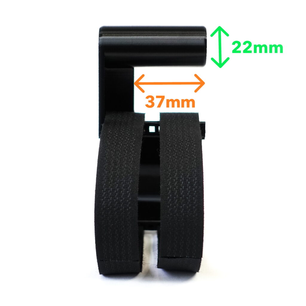 バーの部分は直径約22mm(22.2mm)になっております。長さは約37mmとなります。一般的なスマホホルダーのクランプ部分の幅は20mm前後なので余裕のあるサイズです。